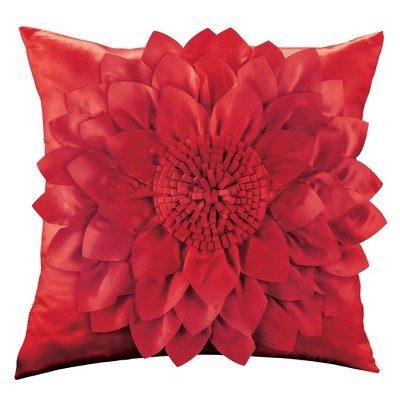 PiccoCasa Decorative Square 3D Satin Rose Flower Throw Pillow Cover 2 Pcs Burgundy 16" x 16"
