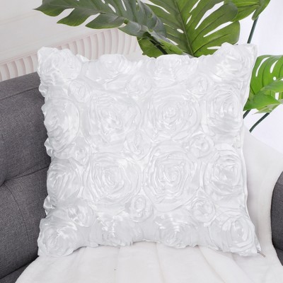 PiccoCasa Decorative Square 3D Satin Rose Flower Throw Pillow Cover 2 Pcs Snow White 16" x 16"