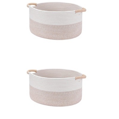 PiccoCasa Foldable Woven Cotton Sturdy Storage Bin Set 2 Pcs