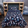 PiccoCasa Kid's 4 Piece Polyester Microfiber Space Astronaut Pattern Bed Comforter Set Twin