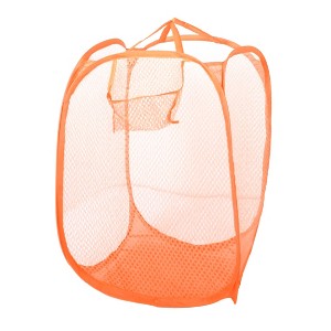 PiccoCasa Meshy Folding Tidy Clothes Storage Nylon Laundry Hampers 12.6" x 12.6" x 20.5" Orange 1 Pc