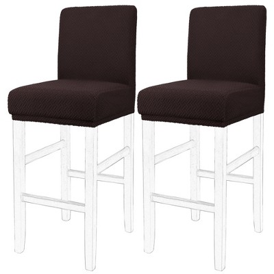 These bar stool covers are made of 95% Polyester & 5% Spandex. Feature soft, wrinkle, and high elasticity. no-pilling even though used for a long time. Breathable and durable features suitable for all-season usage. Available in a variety of fashionable and sophisticated colors, cover your chairs by quickly installing them. Let your old chair look like a new one and more beautiful. Also can prevent your chair from kids scribbling or pets biting. It is a good choice for families with children and pets. With perfect stretch, those chair covers are suitable for most short back stools, bar stool chairs, and counter height stools. It can be used for hotel, home bar counter, bar, cafe, counter, celebration, family dining room decors, etc. The features of the high elastic and elastic band make it easy to install and take off. Also, it is easy to clean and maintain. Please wash in cold water and gently cycle separately, tumble dry at low temperature, does not bleach or iron. Suitable of Chair Size: Back Height: 12-14inch (30-36cm); Back Width: 14-16inch (35-41cm); Seat Length: 14-16inch (35-41cm); Seat Width: 14-16inch (35-41cm); Seat Thickness: 1.5-4inch (4-10cm).