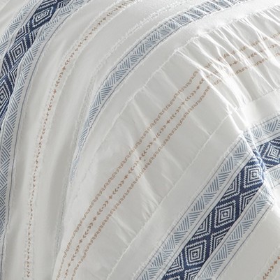 The Pickford Duvet Cover Set by Levtex Home is hip and contemporary. Offered in different colors, this design will immediately transform your bedroom. Made with a durable cotton, this duvet cover set features a woven jacquard with detailed bohemian patterning and ruching. It has a bohemian woven stripe on the front and a solid cream 100% cotton on the reverse. It closes with easy to use, durable buttons. The Pickford Duvet Cover Set is machine washable and includes the duvet and matching pillow cases. Enjoy this for years to come!