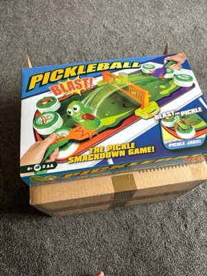 Bring the excitement of the hottest paddle sport to your home with Pickleball Blast - The Pickle Smackdown Game! Perfect for kids aged 6 and up, this game is all about fast-paced, fun-filled action. Your little ones will love smashing the wiggly Pickle with their Pickleball Paddle in thrilling face-to-face battles. The goal is to aim for the opponent’s Pickle Jars, but beware—the tricky Pickle Skewer can send the Pickle flying back their way! The first player to flip over two of the three Pickle Lids scores. Pickleball Blast is easy for young kids to set up on any table and includes everything you need: the Board/Court, 2 button-controlled Paddles, 1 Net, 1 Pickle, and 6 Pickle Jars. Boys and girls can keep track of their score on the Score Slider on the side of the Pickle Board, with the first to score 4 points winning the game. "Relish the moment" with this action-packed game that promises endless fun and laughs for your children!