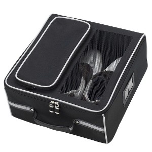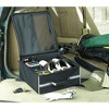 Golf trunk organizer provides storage for shoes, balls, spikes, gloves, tees, and towel. Acts like a golf locker in the car. Ventilation area over the shoe compartment. Has room for up to 2 pairs of shoes and all your golfing accessories. Folds flat for shipping and storage. Spacious 14" wide x 14" deep x 6.75" high. Makes a great gift for the avid golfer