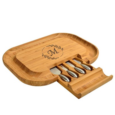Picnic at Ascot's Windsor Cheese Board Set comes with four stainless steel cheese tools, four stainless steel cheese markers, and one ceramic dish for additional snacks. Its magnetic block keeps tools organized when they're not in use. This monogrammed version includes a single letter engraved on the bottom right corner.