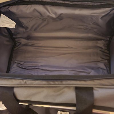 - Tote features an adjustable shoulder strap with comfort pad, a reinforced waterproof base, three large zippered exterior pockets to store personal effects, padded carry handles, and a stretch cargo cord on the top of the tote to carry a blanket or towel