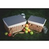 Equally at home on the beach or under the pines, The Canasta Wicker Picnic Basket with Lid is a vintage chic English style wicker picnic basket for 2 with a handwoven willow body and two strand basket weave design. The fully removable lid can be used as a flat surface to hold plates and drinks. Timeless touches like the leatherette hinges, removable poly cotton liner with tie straps, and cotton canvas carrying straps make this your go to small picnic basket set. If you're the crafty DIY type, this is the basket for you: the wood lid can be painted, inked, chalked, and decorated to make your basket one of a kind!