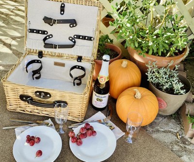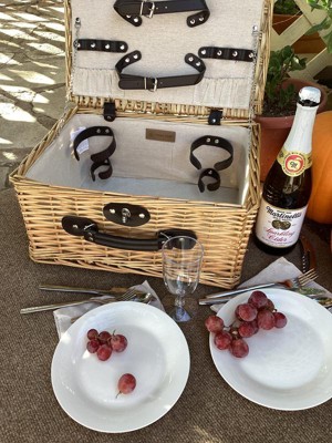 - CLASSIC PICNIC LUXURY - The Classic Picnic Basket for 2 by Picnic Time is an English-style wicker willow picnic set for two with fully-lined fabric interior