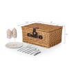 Picnic Time Classic Picnic Basket with Beige Canvas: Wicker Set, Solid Pattern, Handles & Side Pockets, 12 Pieces