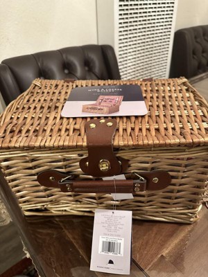- STYLE & FUNCTION - With leatherette lid locking buckle and carry handle, this wine picnic basket is the epitome of romantic vintage chic - perfection for a romantic wine, cheese and charcuterie spread