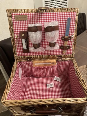 - WINE NOT? - The Classic Wine & Cheese Picnic Basket for 2 by Picnic Time is an English-style wicker willow picnic set for two with fully-lined red and white gingham print fabric interior