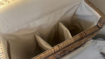 [This review was collected as part of a promotion.] I adore this picnic basket! It is so cute and functional with the 3 sections inside to hold wine but the walls can be removed to make a larger space as well. This basket also has a front pocket which had a cheese border, knife and bottle opener. It also comes with 2 plastic wine glasses. This is such a great value and gift for anyone. I got so many compliments on this picnic basket.