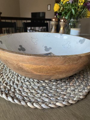 - MIX IT UP WITH MICKEY - This salad mixing bowl features a design showcasing the world’s most famous mouse on naturally-beautiful mango wood and measures 13.5" x 13.5" x 4.3"