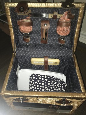 [This review was collected as part of a promotion.] This basket has everything you need for a wine and cheese picnic. Just grab your favorite bottle and some cheese and crackers. This tote has a picnic blanket and a container for your snacks. It has two glasses with an opener and a cutting board and knife. There is some extra room in the basket for a few more items like the crackers and chocolate. Excellent for a date or visiting wineries. This would make a great gift