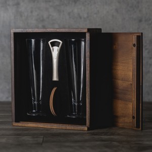 [This review was collected as part of a promotion.] This is the perfect gift for the person who has everything. The quality is exquisite. The acacia wood box is so pretty, and it smells wonderful. The box has dovetails and a sliding door. It is gorgeous. The fluted beer glasses are just as exquisite as the wood box. They are made of high-quality glass. It also includes a metal bottle opener made of high-quality metal and two real cork beverage coasters. I got this set as a gift for my brother-in-law, who has everything and can afford anything he wants. He is tough to shop for, but he loved the gift. I go over to my sister’s house quite a bit and always see him drinking out of the glasses. This truly is a great gift.