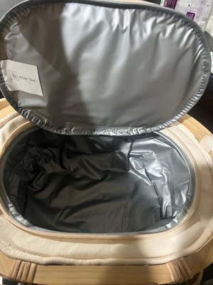 [This review was collected as part of a promotion.] This Sequoia Picnic Basket in beige is so great in quality. Very well made. I love that its so easy to carry and looks very fashionable. The storage space is a good size and a-lot of things fit inside. Comes with a insulated lunch bag inside to keep thongs fresh .