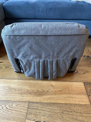 [This review was collected as part of a promotion.] I use this chair on the floor in my kids play area to help support my back. I absolutely love how you can set it upright or different levels of recline. I love to sit in it with the arms up, but you can easily adjust it to have the arms down. It’s very comfortable for sitting for long periods of time and has back straps for easy carrying capability! I wish that there were some sort of grips on the bottom of the chair because it slides around a lot.
