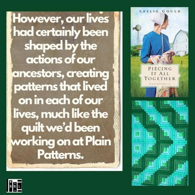 Piecing It All Together, #1 Plain Patterns, by Leslie Gould, is one novel I want to label purely “Wunderbar.” I was fortunate to catch a sample chapter somewhere on my phone and I was hooked. I immediately requested a copy from NetGalley. I must admit, I was a little uncertain. Some of Gould’s collaborations I have loved, while one particular series was not my style. But I am so glad I didn’t miss this one, and I will be first in line for book two, it is that enticing.