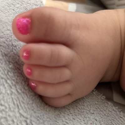 This is such a fun brand for babies and toddlers! Of course my 4 year old had to have “rainbow nails” so we used Keep it Kiwi, Tickled Pink, and the Happy Hands set. We started off with the base coat and ended with the glitter topcoat. We also painted my 4 month old babies toes for the first time! This is the only brand I would use on my babies! Super easy to apply and I appreciate the smaller brush the bottles have. Having used this brand before, the only con is the color doesn’t last as long as normal nail polish does.