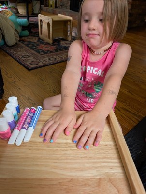 The colors are great, but don’t love that it doesn’t stay on very long. Seems to chip right away/same day even. I do like that this is a healthier option for kids though.
