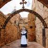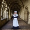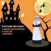 - Includes dress with apron, collar and bonnet.