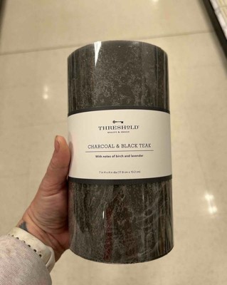 Set the mood with the bold, earthy aroma of the Pillar Candle Charcoal and Black Teak from Threshold™. Infused with a blend of teakwood and charcoal, this 10.8oz candle brings a rich, grounding fragrance to any indoor space. With a single wick and a clean-burning design, it offers up to 35 hours of ambient glow and inviting scent that's ideal for quiet evenings or upscale decor.