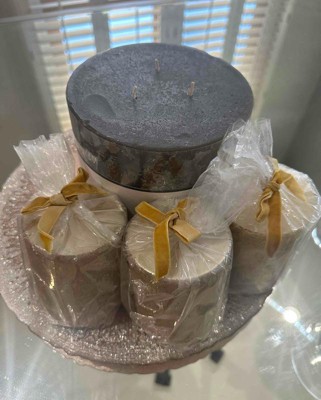 [This review was collected as part of a promotion.] This is an eyecatching dark gray colored 3 wick candle. It is a large size with a 6 inch diameter and 6 inches in height. This candle makes an eyecatching table center piece or stand alone feature and it is lightly scented in a fresh aroma. There are other similar gray candles also by Threshold in different sizes also sold by Target that would look great together. I received an incentive to write this review.