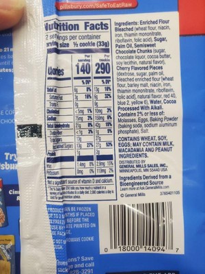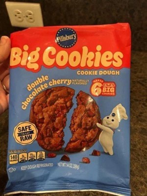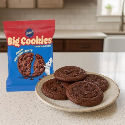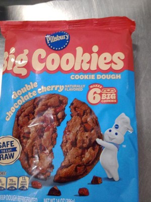 - CONTAINS: One 14 oz package of Pillsbury Big Cookies Double Chocolate Cherry Cookie Dough; Makes 6 big cookies
