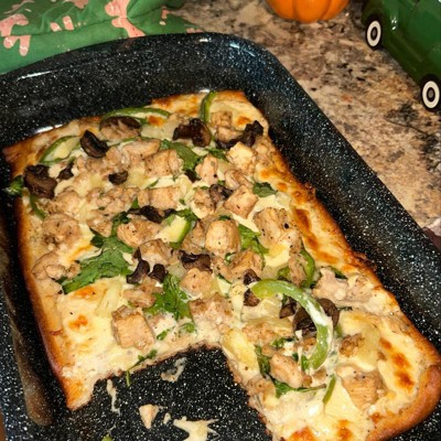 I couldn’t believe how terrible this new pizza crust dough is. Very small and had to stretch to fit my round pizza pan. The center browned up eventually but I could not get it crispy. Would not recommend this product to anyone. Please go back to the old size and recipe. That was a decent product
