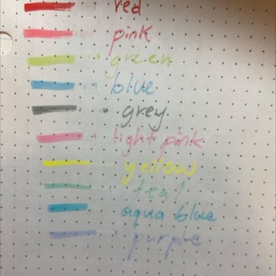Do wish this pack came with an orange. I love how they highlight though. The blue is a bit too opaque. And the red is very dark. The green is more of a yellow compared to the darker green in the smaller pack. Overall they work