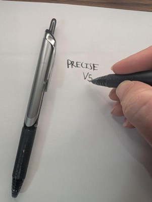 [This review was collected as part of a promotion.] The Pilot Precise V5 in black has become one of my go-to pens for everyday writing. The needle-point tip lays down a crisp, consistent line that makes even quick notes look neat. It glides smoothly across the page without skipping, and the ink flow feels perfectly balanced—neither too heavy nor too faint. I especially appreciate how clean the writing looks; the black ink is rich without smudging easily. The lightweight body also makes it comfortable to use for long stretches. Overall, it’s a reliable, precise pen that adds a little satisfaction to ordinary writing tasks.