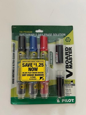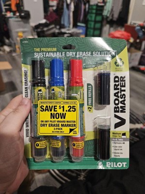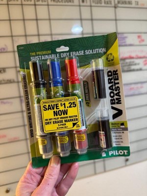 - Includes 3 Pilot VBoard Master Dry Erase Chisel Tip Markers and 2 black ink refills