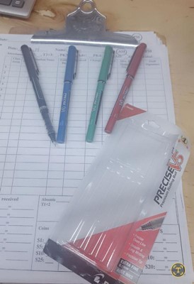 [This review was collected as part of a promotion.] I have been using the pilot brand for writing for years. The usual clean and precise writing is there when using this precise V5 pen. More color option is a plus.