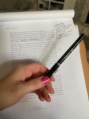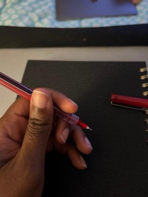 [This review was collected as part of a promotion.] The pen writes amazing and the colors are vibrant! The fine point makes taking notes easy and the pen is easy to hold and write with. The perfect black pen to add to your writing utensils.