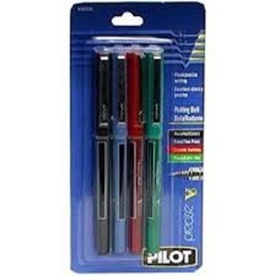 [This review was collected as part of a promotion.] I got the Pilot Precise V5 4 pack Assorted from Influenster in exchange.for.my honest opinion, these pens are my favorite it came in several cute colors, I have always bought the 4 pack in black; plastic and it's got needle point.