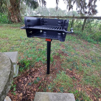 Pilot Rock H-16 B6X2 Park Style Steel Outdoor BBQ Charcoal Grill and Post, Black