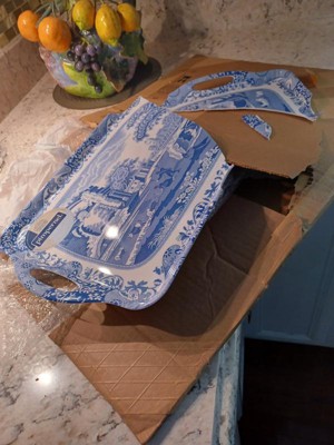 Bring elegance and practicality to your dining and entertaining with the Spode Blue Italian Melamine Serving Tray. Since 1816, Spode’s Blue Italian design has been cherished for its intricate 18th century Imari Oriental border and romantic Italian countryside scene, a pattern that continues to elevate tables around the world. Crafted from durable melamine, this rectangular tray is designed for both style and everyday function, offering the strength and resilience to withstand frequent use without chipping or cracking. Measuring a generous 19.25 inches by 11.5 inches, the tray provides ample surface area to serve drinks, appetizers, or desserts during gatherings, family dinners, or festive occasions. Its lightweight construction makes it easy to carry, while the smooth surface allows for quick cleaning. Completely dishwasher safe, this tray saves time in the kitchen, though it is not intended for microwave or oven use. More than just a serving essential, the Spode Blue Italian tray doubles as a striking decorative piece, enhancing coffee tables, consoles, or kitchen counters with its signature blue-and-white artistry. Whether used for everyday meals, entertaining guests, or as a thoughtful housewarming or holiday gift, this melamine serving tray combines beauty, durability, and practicality in one. Add the sophistication of Spode Blue Italian to your home and enjoy a versatile accessory that elevates any occasion.