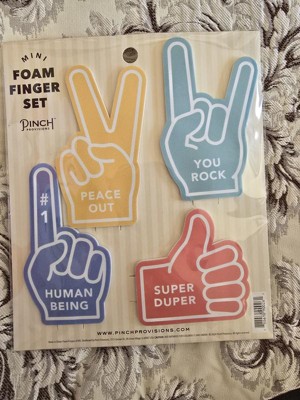 Take your spirit fingers to the next level with this cute and quirky 4-piece Mini Foam Finger Set by Pinch Provisions. Featuring playful messages like “Peace Out,” You Rock,” “#1 Human Being,” and “Super Duper,” these tiny foam fingers are packed with personality. Perfect for desk decor, game-day antics, or as a quirky gift or gift topper, this set helps you wave, point, and cheer in the smallest (but mightiest) way possible. Because sometimes, even your fingers deserve their own spirit gear. A Target exclusive from Pinch Provisions, a women-owned and operated company.