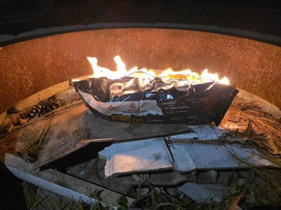 [This review was collected as part of a promotion.] I love the ease of starting a fire outside. All you need is one log, and a multi purpose lighter to start the log (bag) on fire. Once the log is engulfed you can add wood and you’re ready to enjoy the warmth of the bonfire
