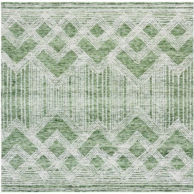 The subtle sage and ivory hues create an understated yet sophisticated palette, while the plush 3/8 inch pile height provides the perfect level of comfort. The contemporary pattern, reminiscent of a serene and minimalist textural design highlights the perimeter of the rug, adding depth and dimension to its square shape.