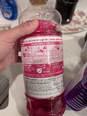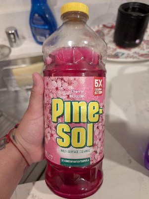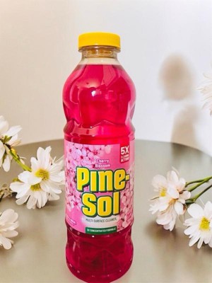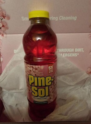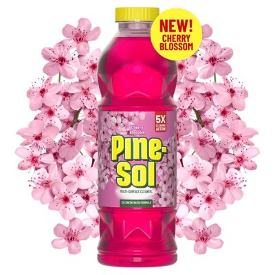 With Pine-Sol Cherry Blossom Multi-Surface Cleaner, you only need one cleaner to fight tough dirt, grease and grime. This floral scented Pine-Sol gives you 5X cleaning action as it deodorizes, cuts through grease, removes grime, tackles tough dirt and removes 99% of allergens*, all while leaving a soft and sweet Cherry Blossom scent that transports your senses to a warm spring day. Pine-Sol Cherry Blossom cleans (almost) anything: Pine-Sol is suitable for use on sealed wood, tile, stone, porcelain, glass and more when used as directed. Do not use on marble, aluminum, copper or wood that is unfinished, unsealed, unpainted, waxed, oiled or worn. *Non living dust mite matter and pet dander. **Vs. unconcentrated Pine-Sol Multi-Surface Cleaner. USAGE DIRECTIONS: GENERAL CLEANING: Mix 1/8 cup per gallon of water. Mop, wipe or spray with solution. Prepare solutions daily. HEAVY DUTY: For tough jobs, use full strength and rinse immediately. Do not use on marble, aluminum, copper or wood that is unfinished, unsealed, unpainted, waxed, oiled or worn. Do not use or mix with bleach-containing products. CAUTION STATEMENTS: CAUTION: EYE IRRITANT. Do not get in eyes. FIRST AID: EYES: Rinse with water for 15-20 minutes. Call a doctor or poison control center if irritation persists. KEEP OUT OF REACH OF CHILDREN AND PETS.