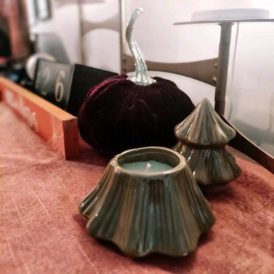 [This review was collected as part of a promotion.] I like this little Christmas tree surprise! Our house loves candles but sometimes I don’t want another candle on my mantle. This is the perfect solution. Top on- cute little holiday decor, top off- small smell good candle. It is small, so it is more of an accent item than a main character. We haven’t lit the candle yet, but it has a light pine scent. There is a little rubber ring on the inside to prevent the porcelain from knocking.
