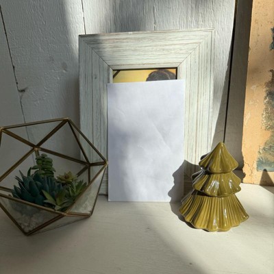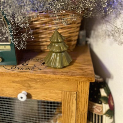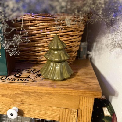 [This review was collected as part of a promotion.] Surprise, there is a candle in there! Love this little fir tree that hides a fragrant candle. It’s a bit smaller than a tissue box, see pictures for size. The smell is great and not owerpowering. I like that this is decorative too and festive for the Holiday season. I will have this out all winter! The ceramic is fragile, so consider store pick up or drive up instead of shipping.