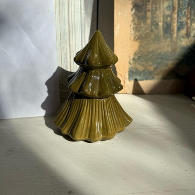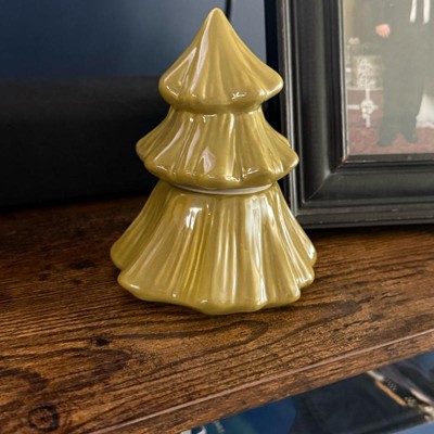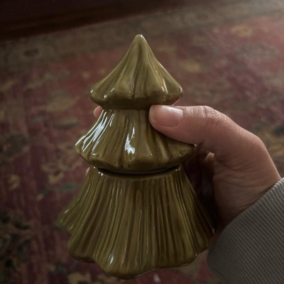 [This review was collected as part of a promotion.] I purchased the pine tree ceramic jar candle made by room essentials and it is the perfect addition to my decorative table! This jar candle is the perfect size and is great quality. The details of the pine tree are beautiful and the color is true pine green. The candle has a nice scent but is not overbearing. I also love how tightly this candle seals. I love how this looks with my decorations!