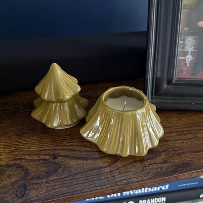 [This review was collected as part of a promotion.] Such a cute little decorative candle to add to Christmas details, or to give as a little gift. For the price, great value. The holder is decent glazed porcelain in a pine tree design. The top comes off to reveal the candle inside. There is a rubber ring on the top to ensure a snug fit when placed on top of the bottom. The scent is a fresh and pleasant, kind of perfumey Christmas tree smell. After lighting it, it did seem like the scent was not as noticeable and permeating as when unlit, which I did find kind of disappointing. When lit with multiple of the same or another scented candle, though, the scent became stronger.