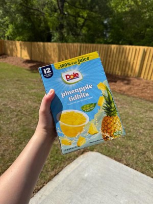 Dole Pineapple Tidbits come in small single serving bowls. They are 100% pineapple with no added sugar. They are sweet, crisp, and taste like fresh pineapple. They are easy to store in your refrigerator if you like them cold, or are ok to store at room temperature. This is a staple of mine and I eat them frequently!!