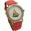 Product Name: Pink Classic Style Sailboat Leather Strap Watch