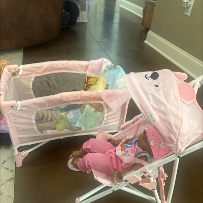 Very disappointed, got as a gift and it looks cute but the crib doesn't stay open. It should snap into place once you unpack it, but it just collapses again.