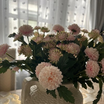 Really cute, perfect for a short vase. Love the color variation of the blooms. I used 4 sets to fill this vase.